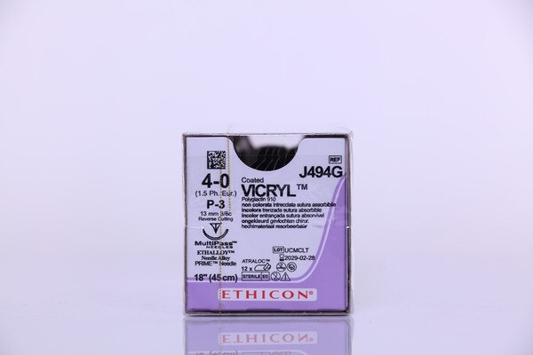 ETHICON SUTURES: VICRYL 4-0 P-3 18" 12 COUNT NDC: J494G FORMAT: MANUFACTURER: ETHICON Quantity discounts available QuantityPrice Out of stock; will ship in a separate order when available. Please log in to see price or purchase this item